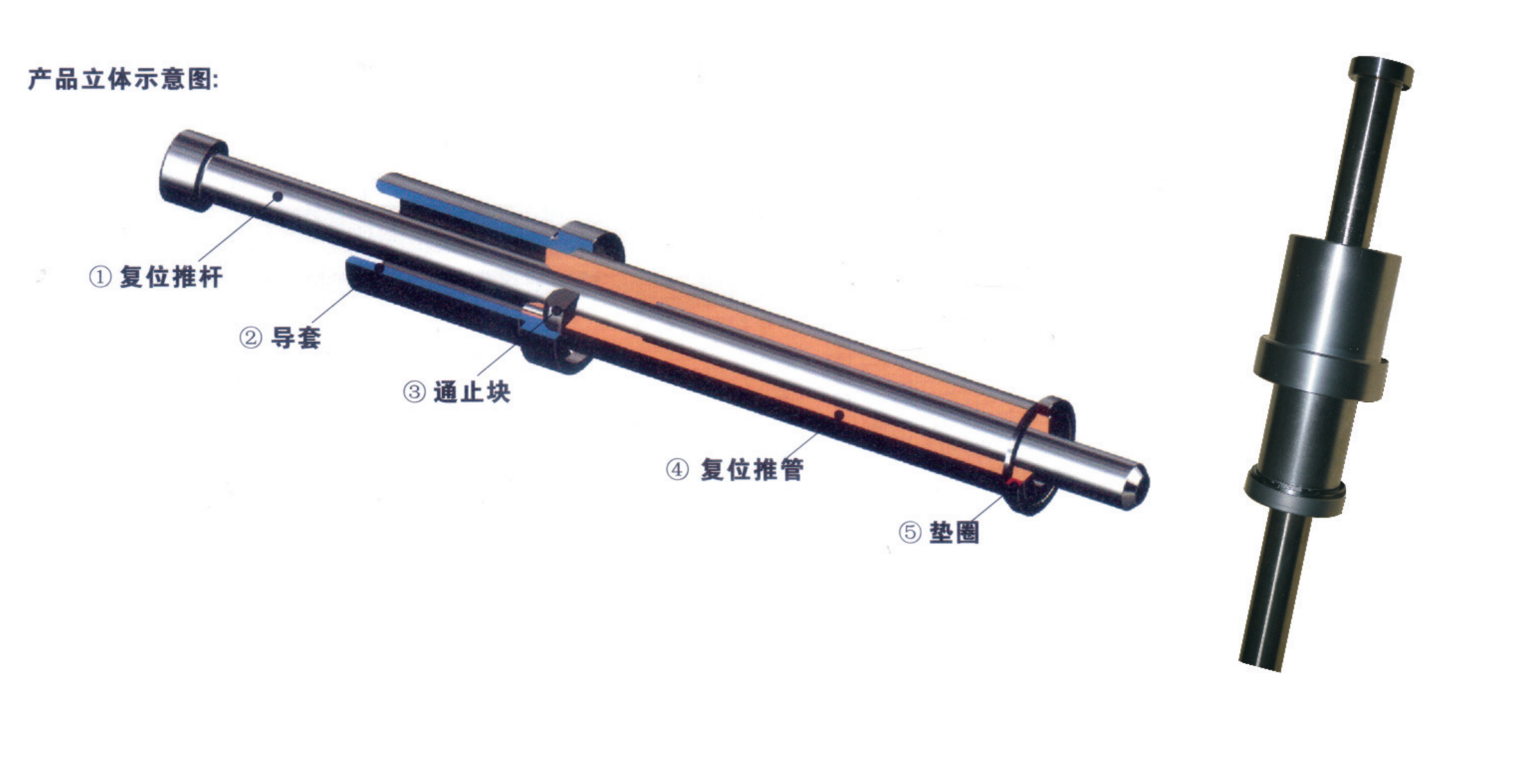 • 1.此裝置作用為在合模前先將頂針板完全復位,從而防止模具損壞;